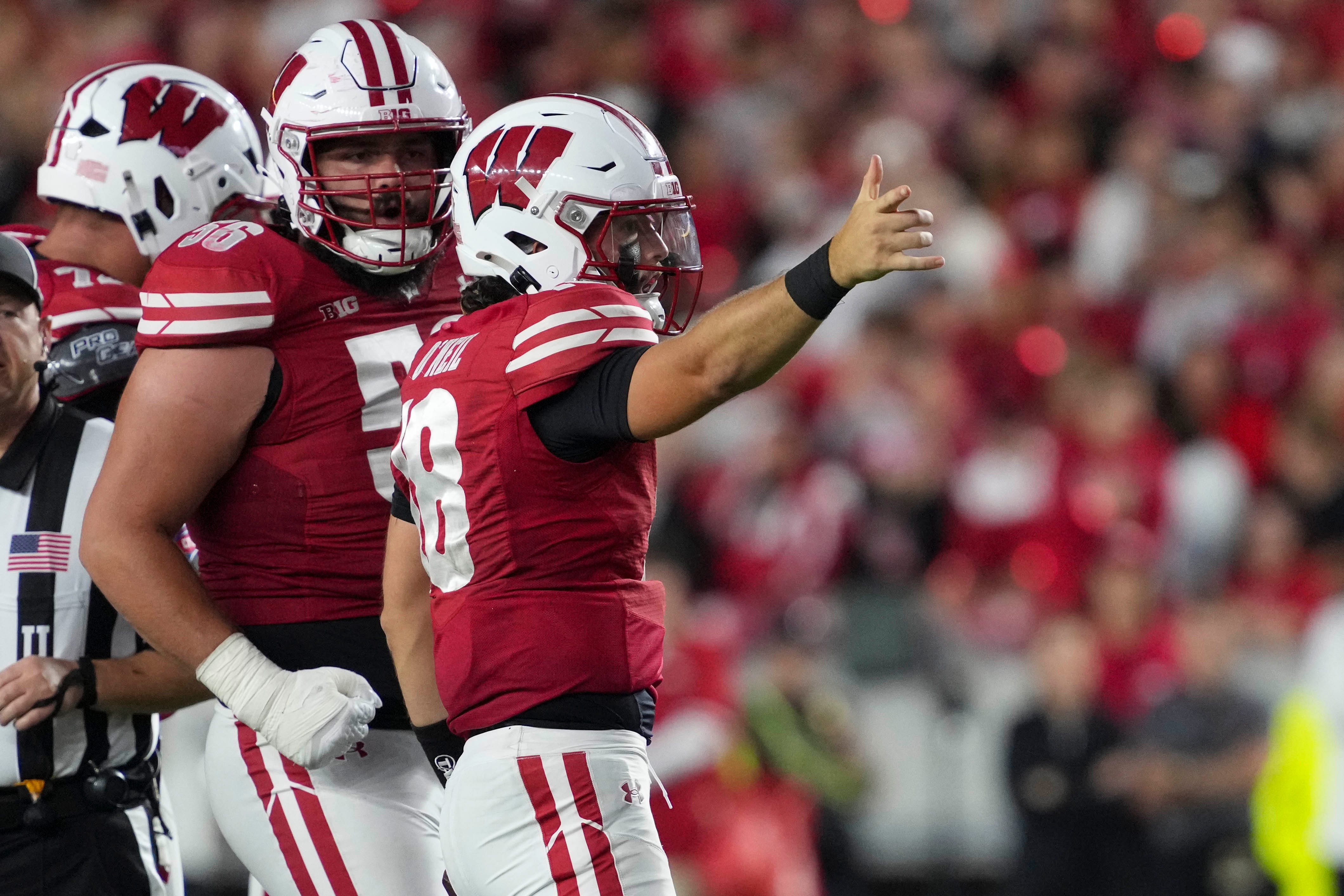 The offense seemed sluggish and ineffective, leading their MAC opponent just 3-0 at the half after starting the game as 17.5-point favorites. Backup quarterback Danny O’Neil manufactured a drive into the red zone but threw a questionable interception on 4th and 3 that left many Wisconsin fans wondering if it was really Braedyn Locke in disguise rocking No. 18 in the Cardinal and White.